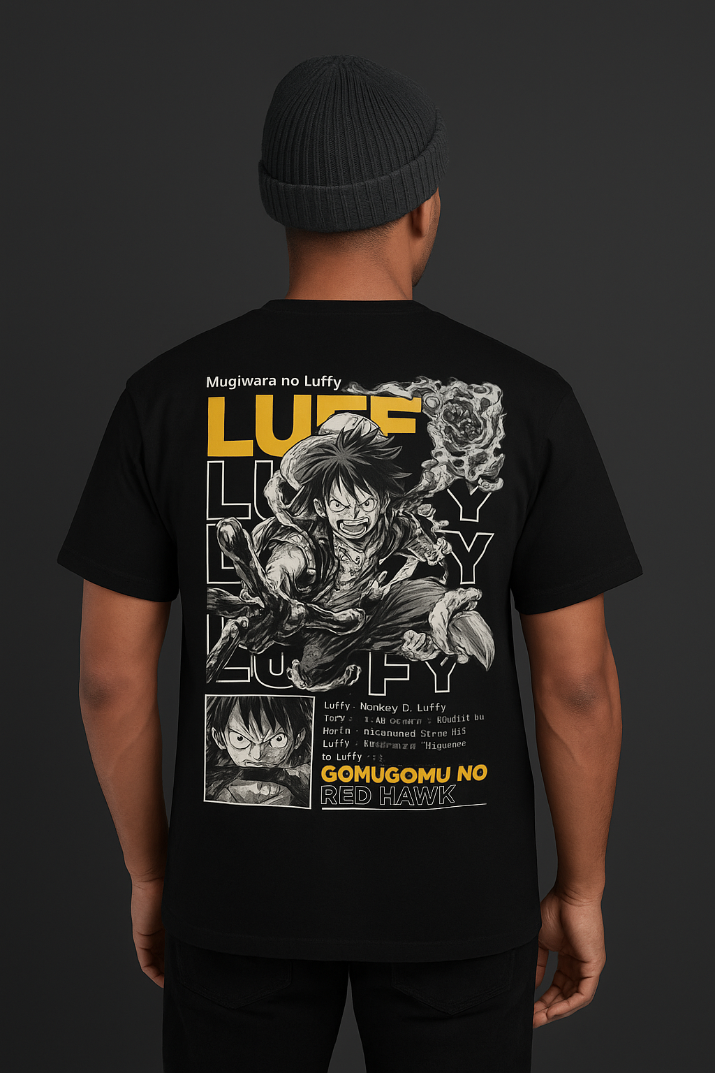 A must-have for anime lovers — this oversized tee showcases an electrifying Luffy-inspired artwork in a dynamic black-and-yellow palette. Designed for comfort and standout style, it’s a statement piece that bridges fandom and fashion. Pair it with cargos, denim, or layered fits for an iconic streetwear look.